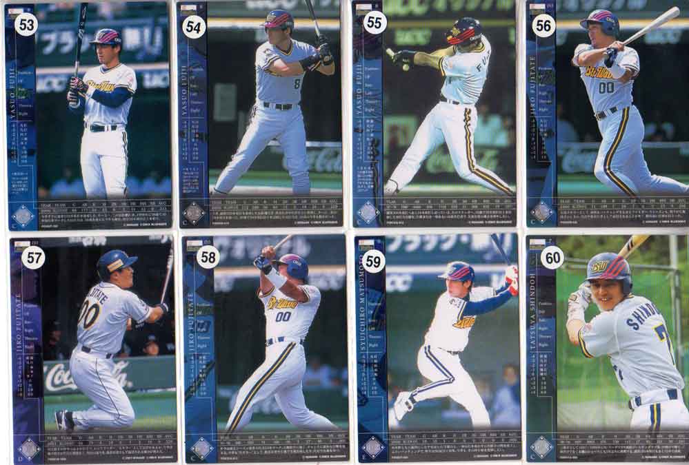 掲載カード(選手)…山崎慎太郎 吉原孝介 日高剛 三輪隆 藤立次郎 松元秀一郎 進藤達哉 藤井康雄番号は写真1枚目左上から右へ44.45.46、左中段から右へ47.48.49、左下から右へ50.51.52写真2枚目左上から右へ53.54.55.56、左下から右へ57.58.59.60 写真をクリックすると大きくなります。